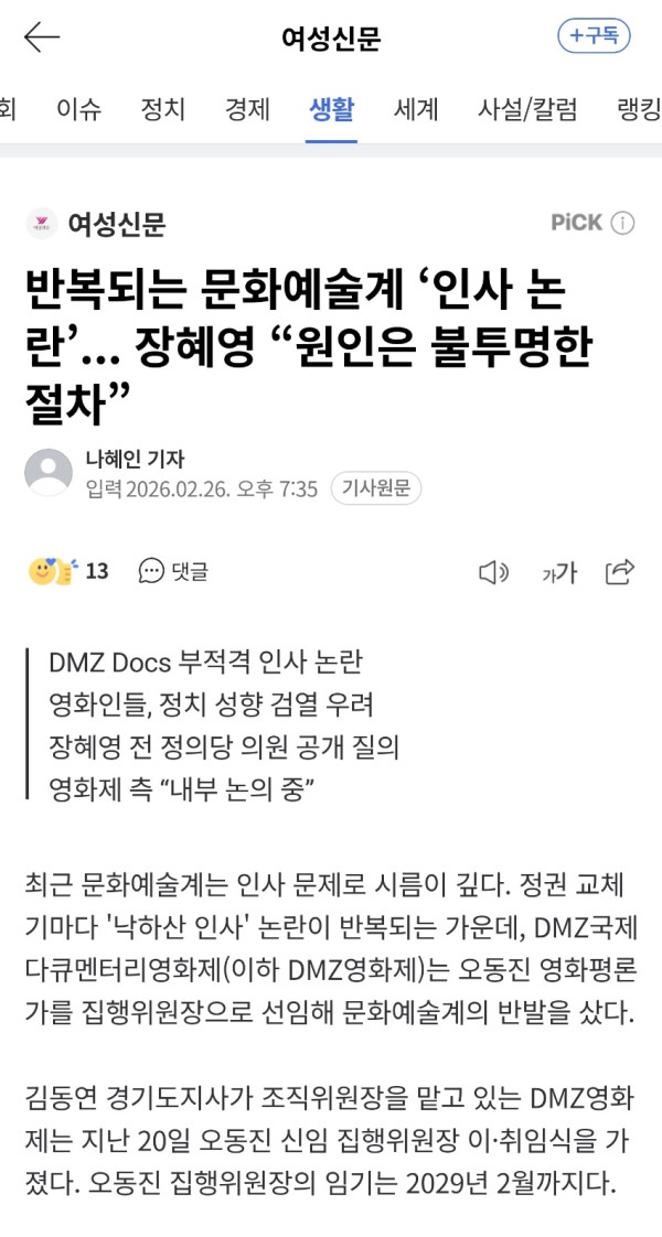 DMZ 영화제 집행위원장 논란터졌었네