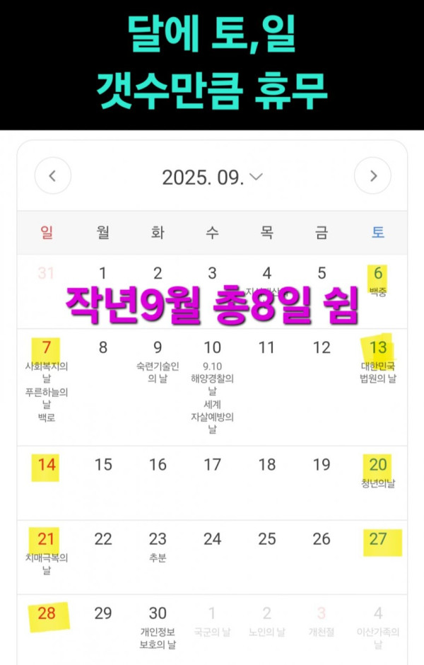 작년9월 휴무인 날이 8일밖에 안되서 피로할수밖에 없어서 '이번달 중에 연차를 쓰려고한다' 고 팀장한테 말했다가 삿대질까지 당하며 '당신은 근무한지 1년안되서 그런거없어요' 라는 소릴 들었네요. 즉 연차든 월차든 사용 거부당함!