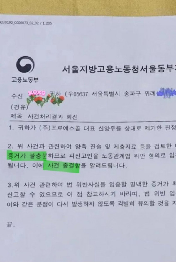 노동부에 연차 못쓰게한것을 신고했는데 증거 불충분으로 사건 종결되었다고 우편옴. 녹음이나 문자로의 증거가 없다는 말이기도 하지만 '난 그렇게 말한적 없다' 고 팀장이 발뺌한거죠 뭐