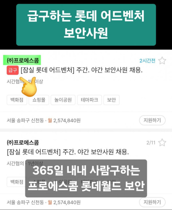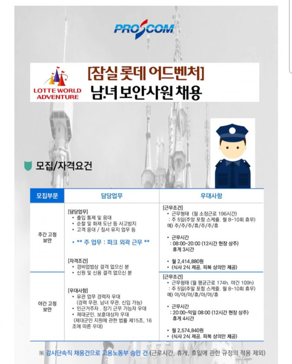 롯데월드 보안 야간조했던 나