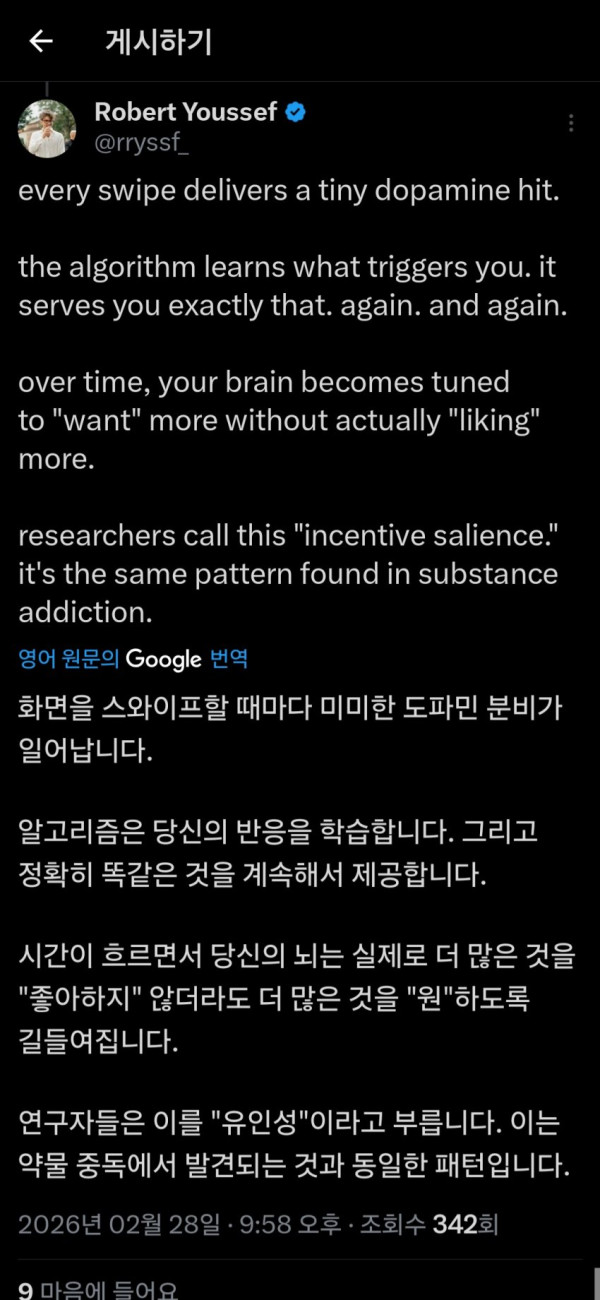 아마 커뮤니티나 인스타도 비슷하지 않을까요?