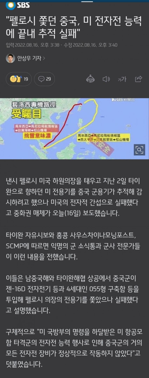 2022년에도 미국 하원의장 펠로시가 대만 방문하는 것을 추적하다가