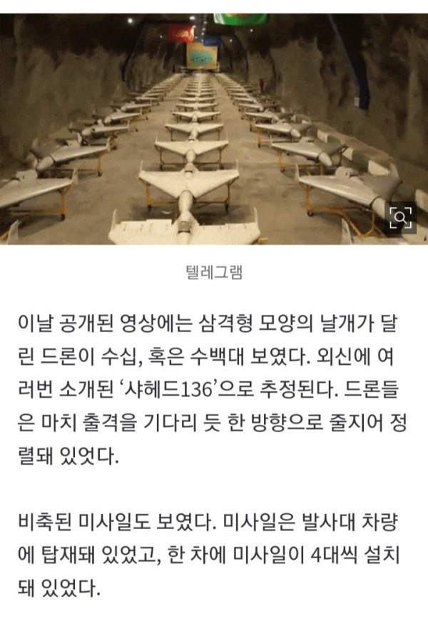 “자폭 드론·미사일 수백대 줄지어”…이란 ‘지하 무기 터널’ 공개