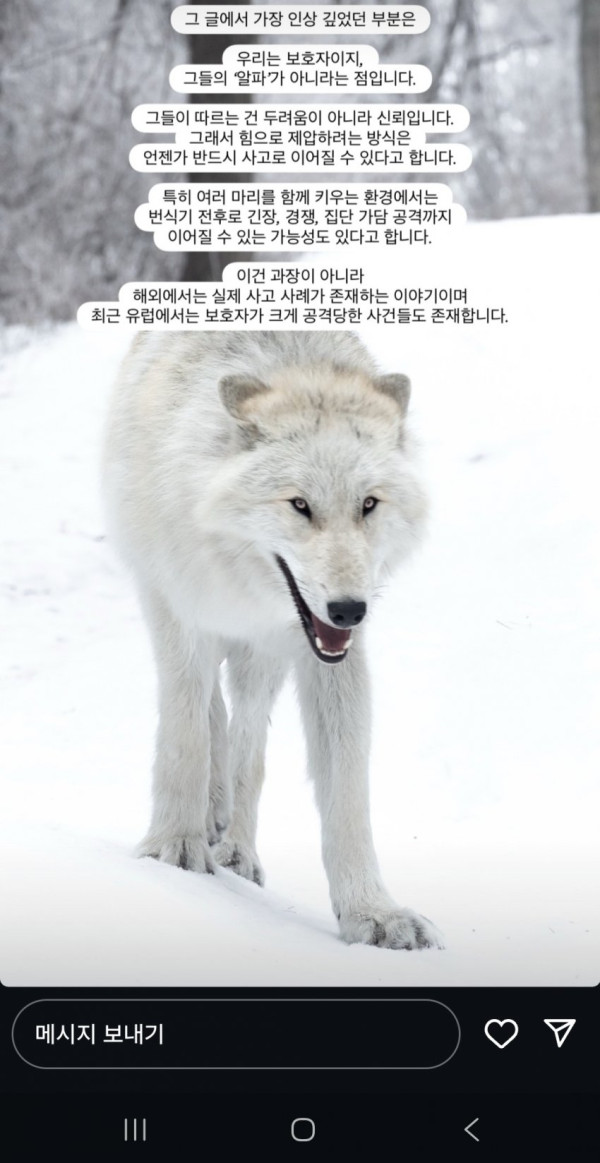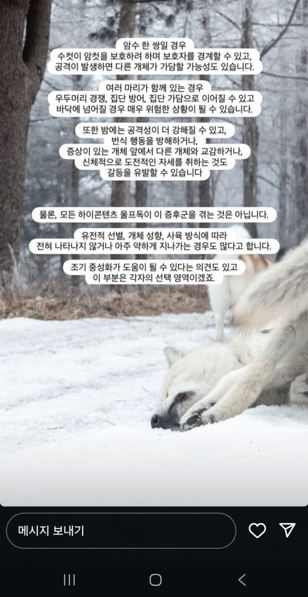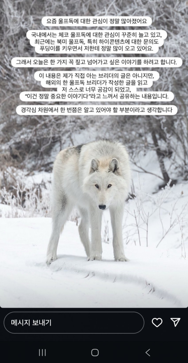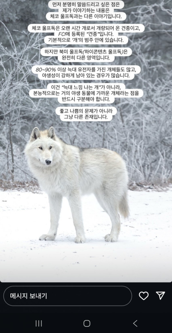 사진상 보이는 허여멀건한 개가 북미 울프독