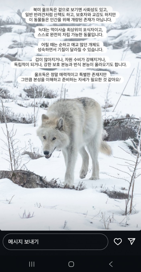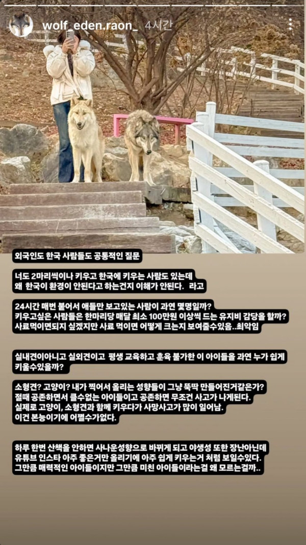 개와 늑대 하이브리드린 북미 울프독 데려옴