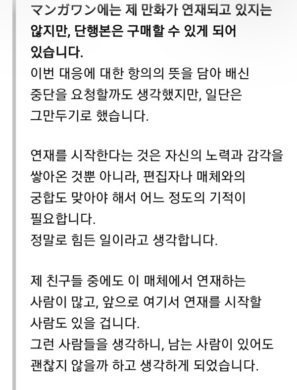 1. 솔직히 작품 연재 중단도 고려했는데 그만둠