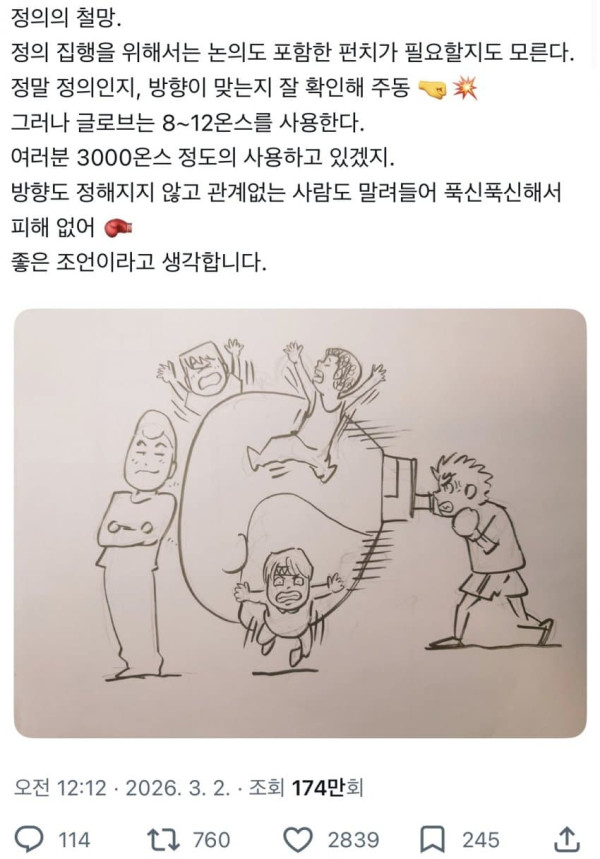 "정말 정의를 위한 펀치인지 방향 확인해봐"