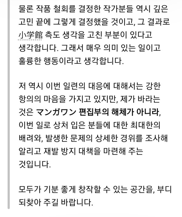 5. 소학원 편집부 해체가 아니라 피해자의 배려와 재발의 방지를 원함