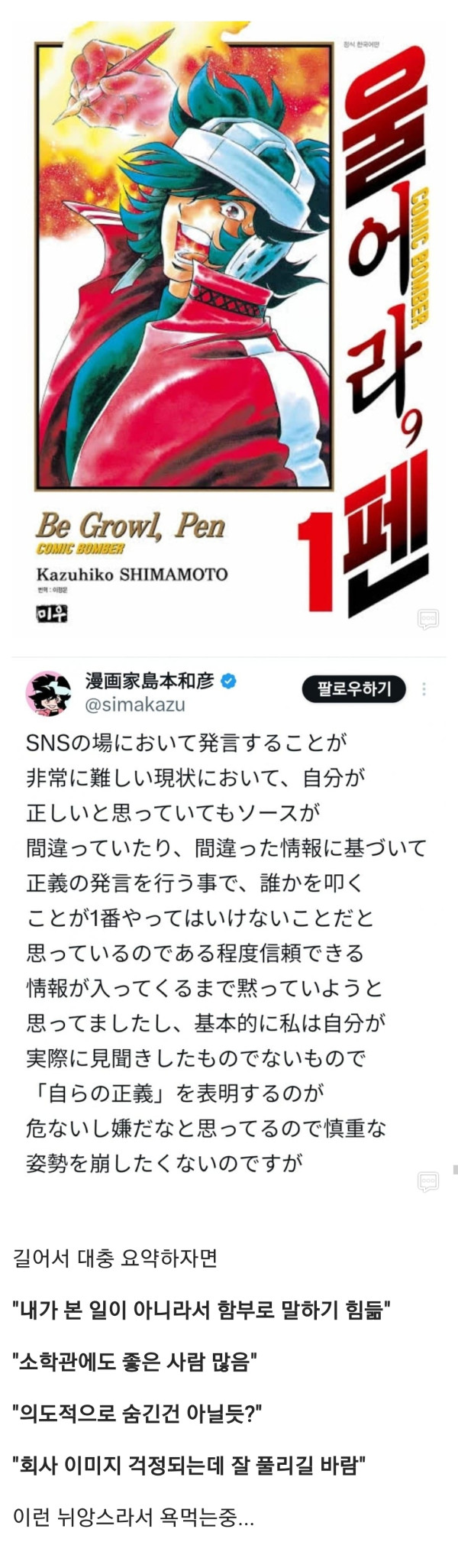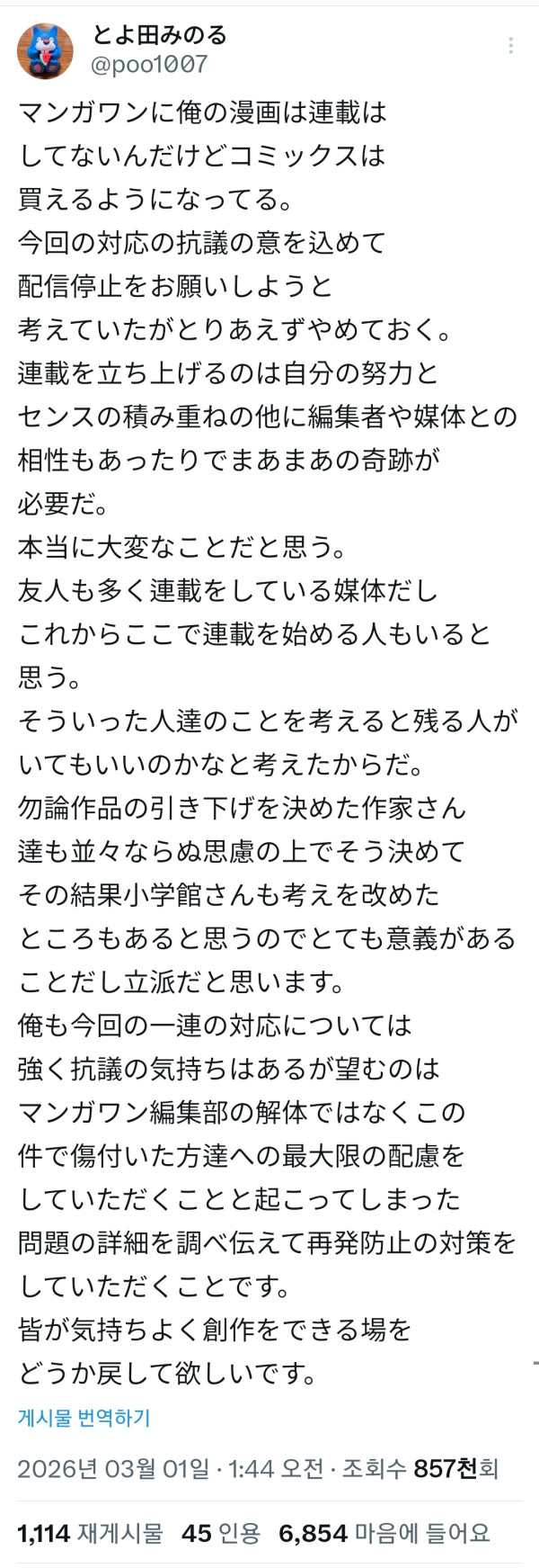 이그죽 작가 소학관 입장 발표.twitter
