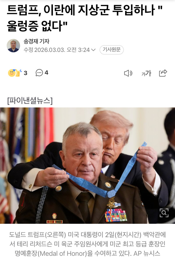 [속보] 트럼프 “미국 이란에 지상군 투입가능성 시사”