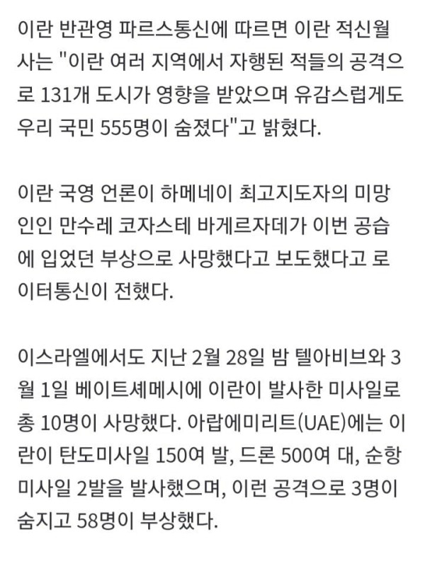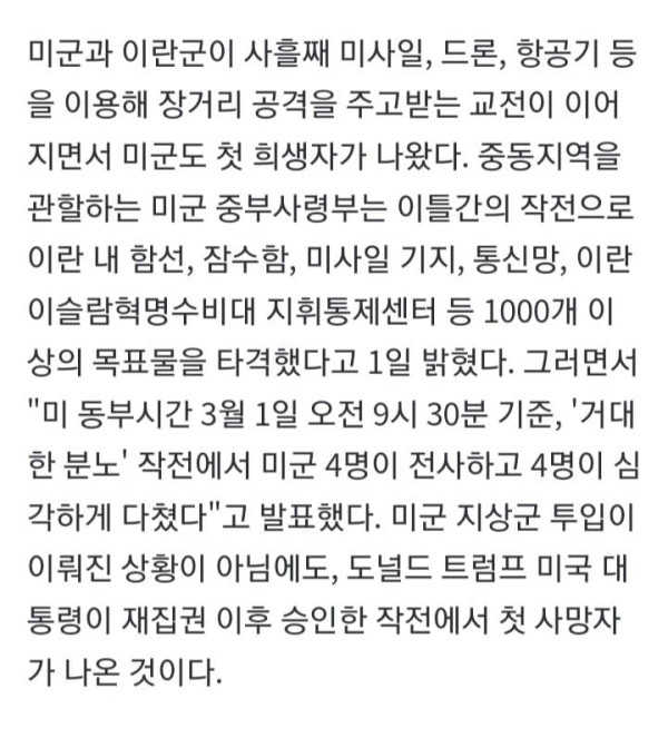 미군, 이란 거점 1000곳 타격 … 격분한 이란, 주변국 무차별 공습