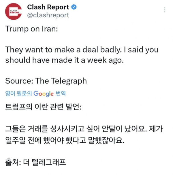 트황 "이란 병신들 ㅋㅋ살려달라고 난리남 일주일전에 하던가 ㅋㅋ"