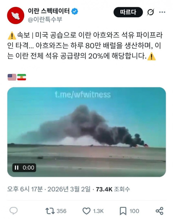 이란 석유 파이프라인 개박살 입갤 ㅋㅋㅋㅋㅋㅋ