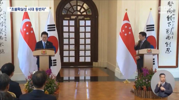 이어진 로렌스 웡 총리와의 정상회담에선 미국의 이란 공습으로 촉발된 중동 정세에 대한 논의가 이어졌습니다.