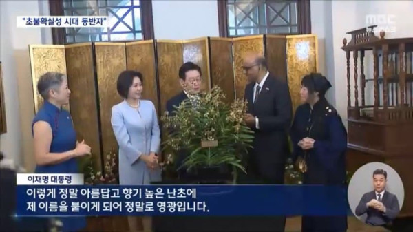 싱가포르 방문 이틀째인 이 대통령이 난초 명명식에 참석했습니다.
