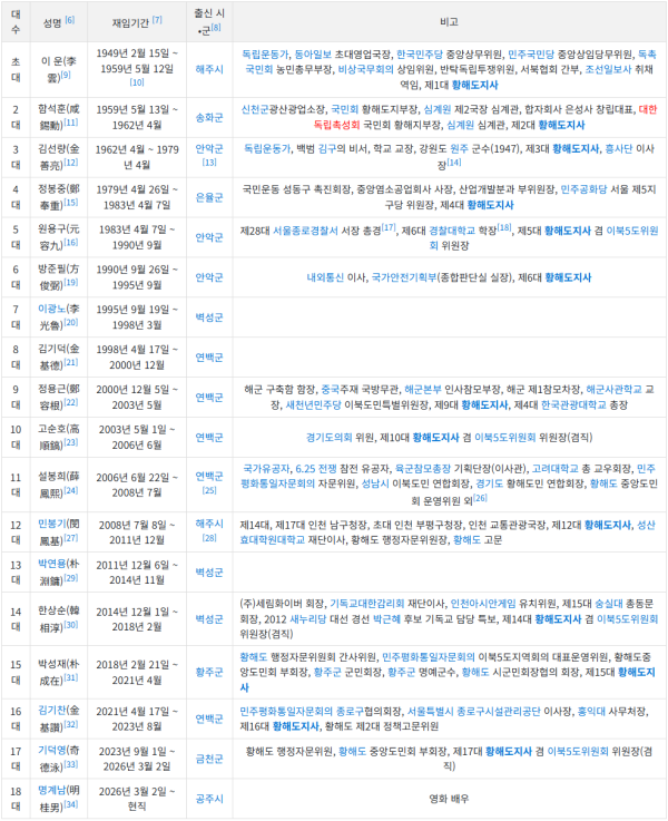 나무위키 캡처에서 보다시피 역대 황해도지사는