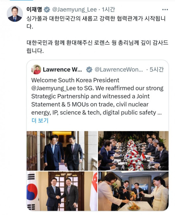 李대통령 "싱가포르 부동산 정책 배우겠다",윙총리와 중동 정세도 논의