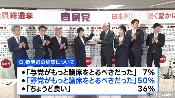적절하다는 36%, 여당이 더 많은 의석을 확보했어야 한다는 7%에 불과함