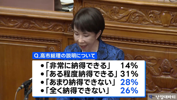 日여론조사, 다카이치 해명 납득 불가 54%... 투표 후회 여론까지