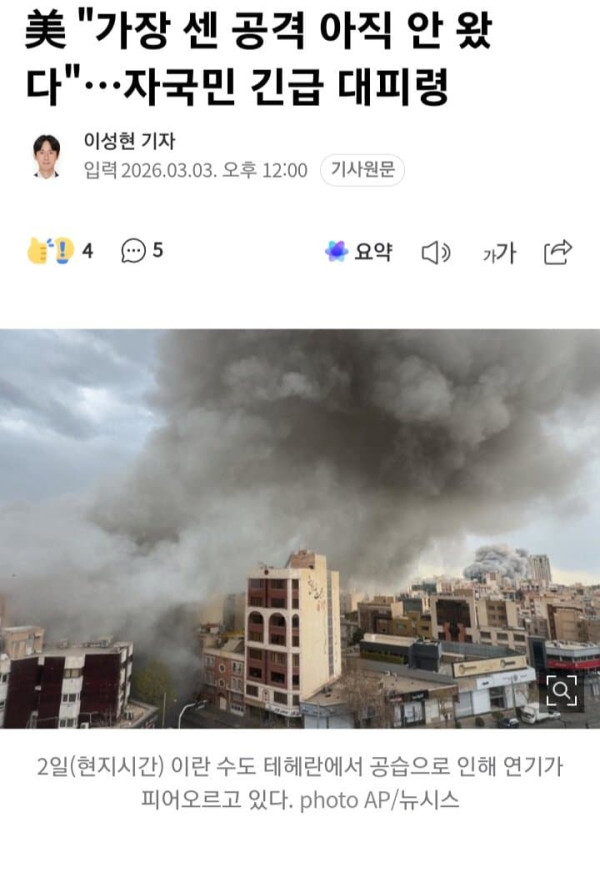 美 "가장 센 공격 아직 안 왔다"…자국민 긴급 대피령