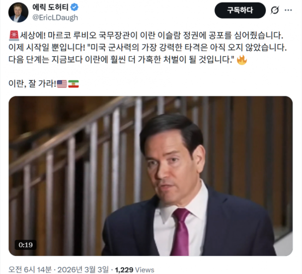 루비오) 이란 잔당 병신들한테 경고