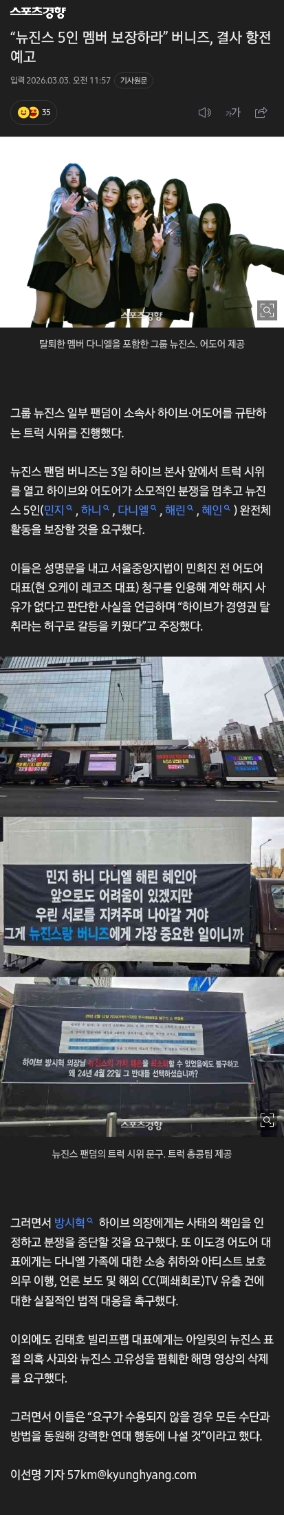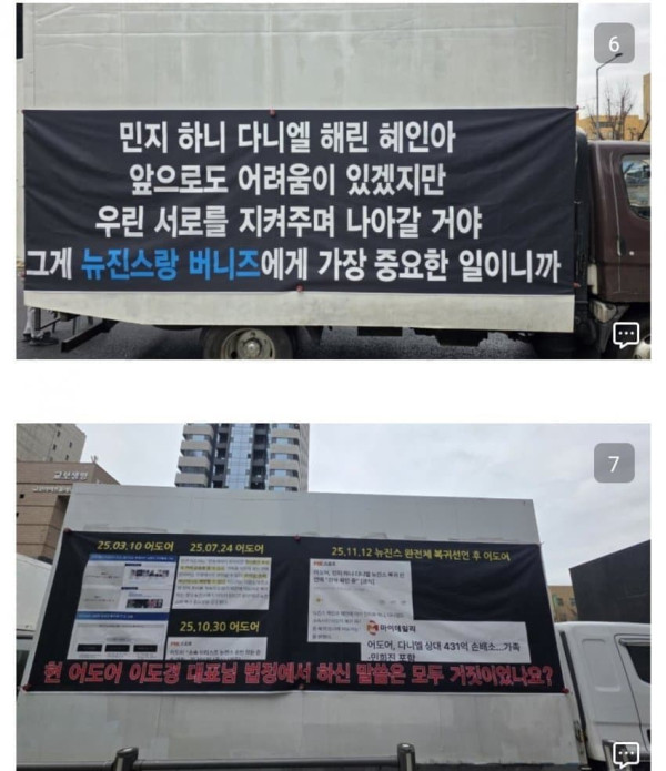 오늘 하이브 사옥앞 뉴진스 트럭