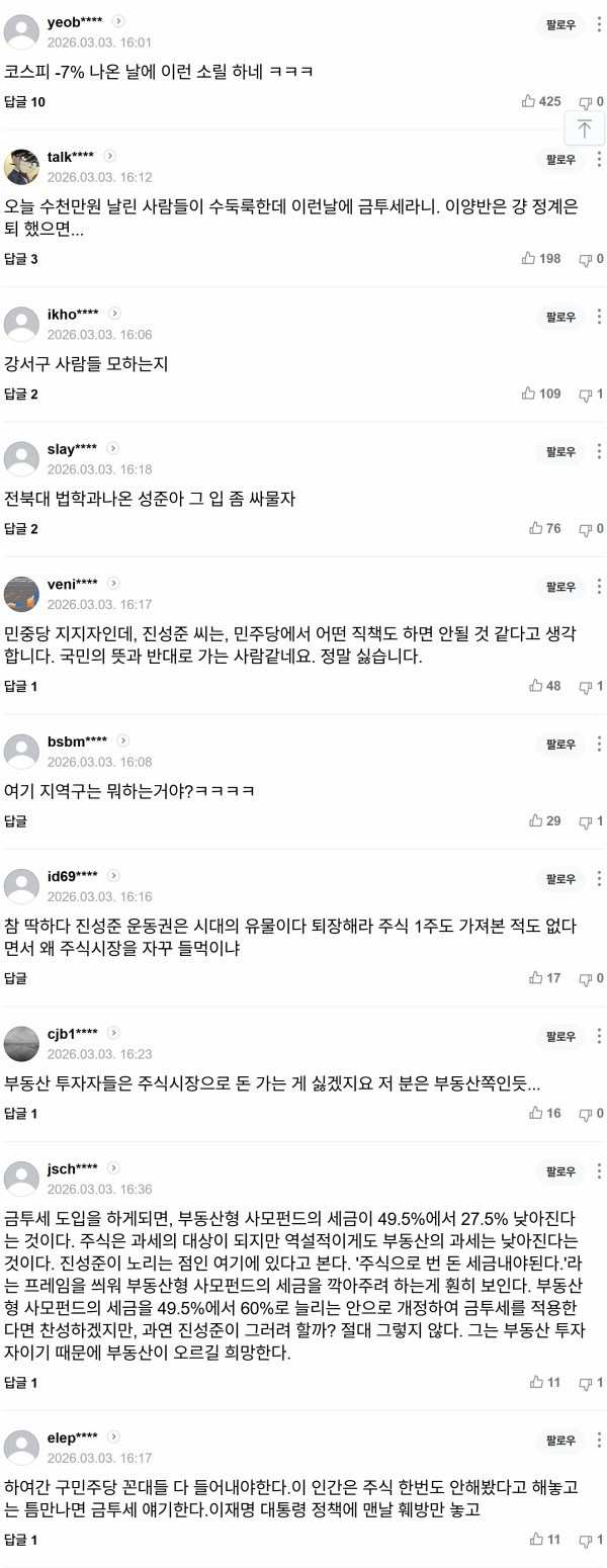 진성준 금투세지랄 또시작 ㅋㅋ