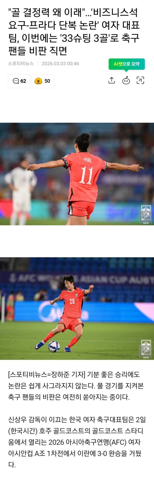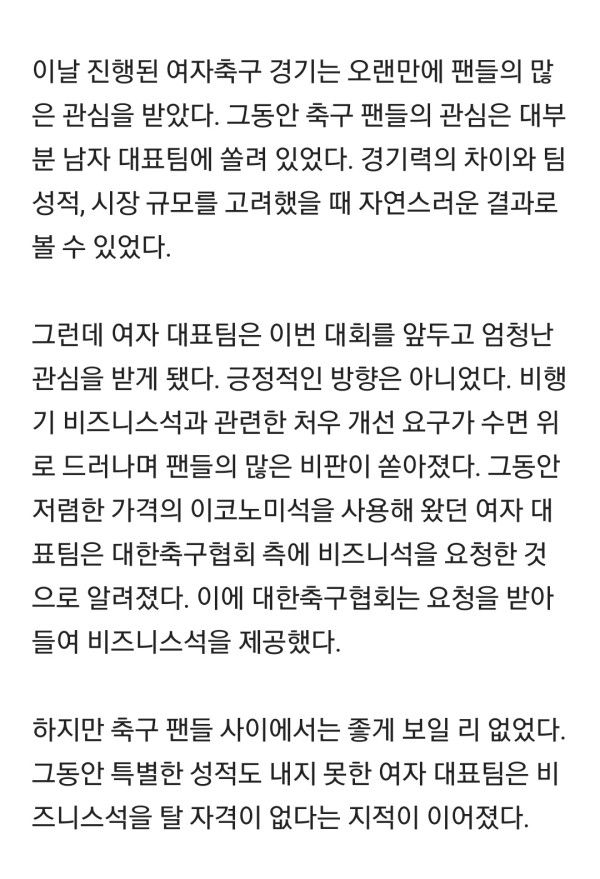 여자축구 인스타 논란.. 이번엔 비즈니스 탑승…"편히 가겠네"