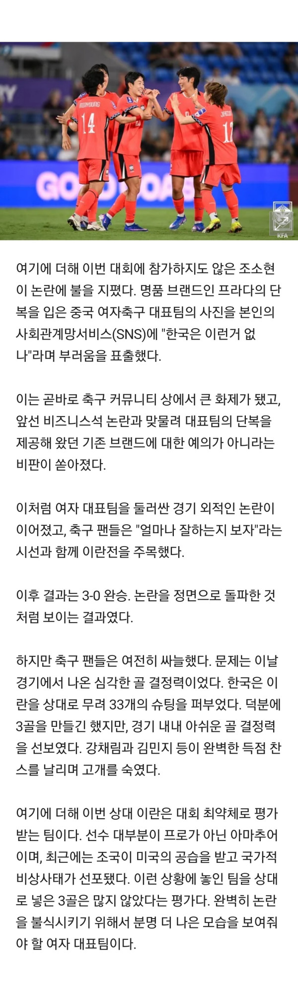 싱글벙글 여자축구 근황