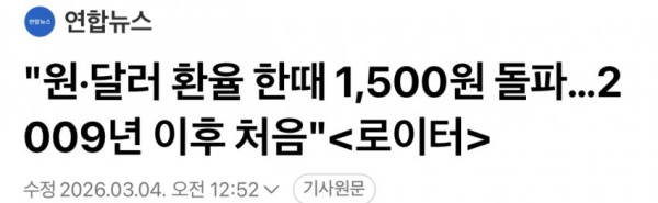 씨발 환율 속보를 로이터꺼를 긁어오냐 ㅋㅋㅋㅋㅋㅋㅋㅋㅋㅋ