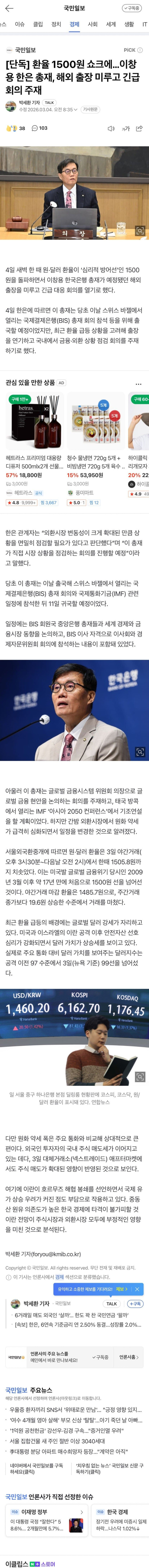 단독] 환율 1500원 이창용 한은 총재, 해외 출장 미루고 긴급 회의