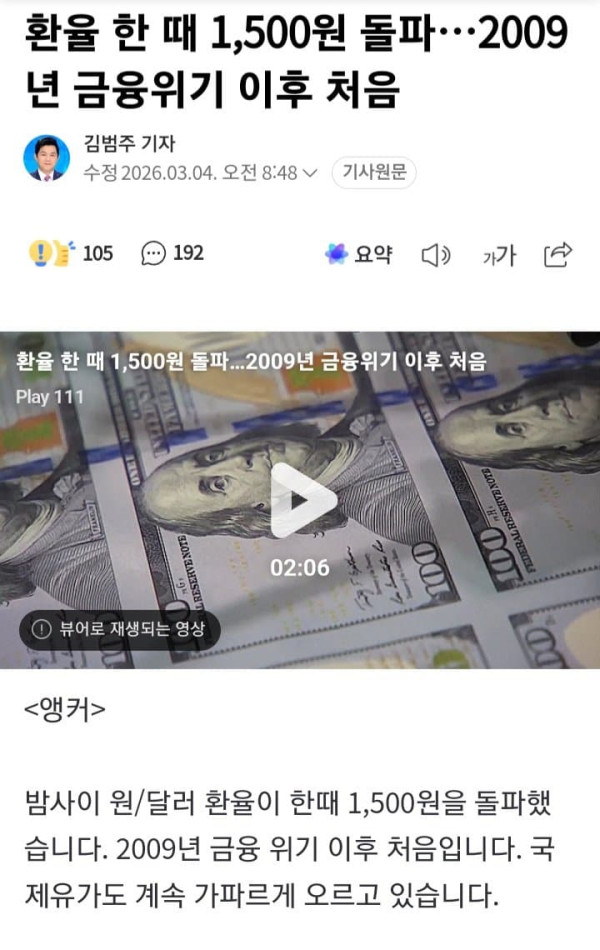 밤사이 원/달러 환율이 한때 1,500원을 돌파했습니다. 2009년 금융 위기 이후 처음입니다. 국제유가도 계속 가파르게 오르고 있습니다. 뉴욕 김범주 특파원이 보도합니다. <기자> 원/달러 환율이 간밤에 한 때 1