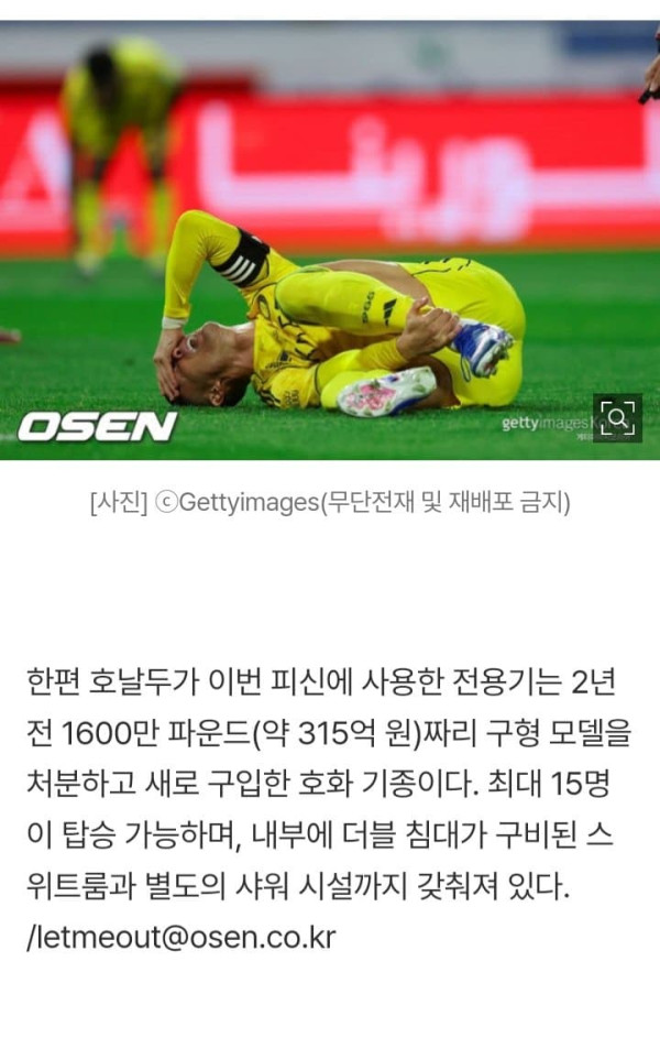 호날두, '1199억' 호화 전용기 타고 사우디 탈출