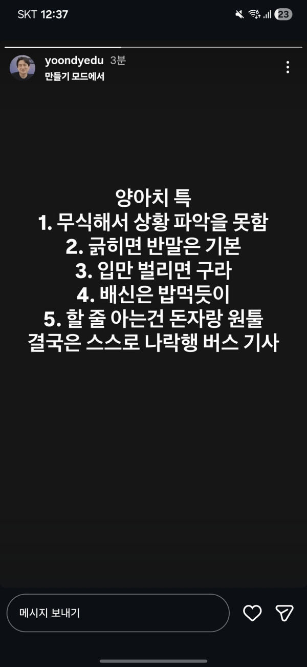 윤도영 스토리 조정식 저격 ㅋㅋㅋㅋㅋㅋ