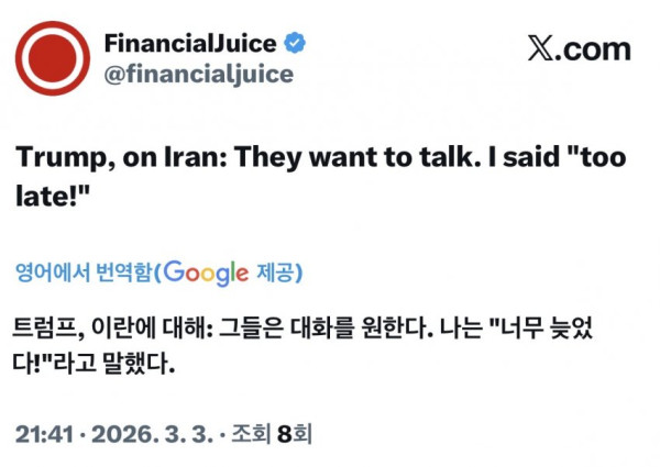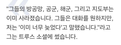 트럼프 “이란이 대화 원한다고 해. 너무 늦었다”