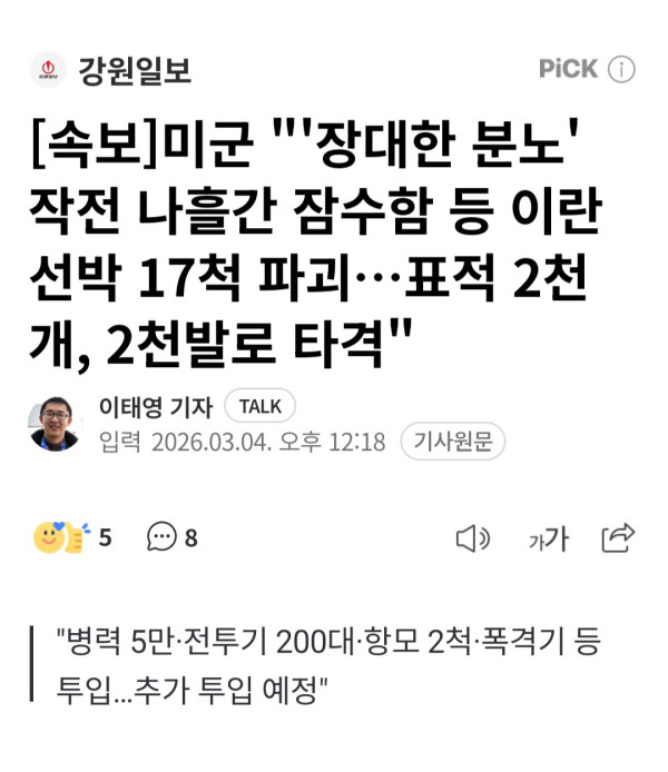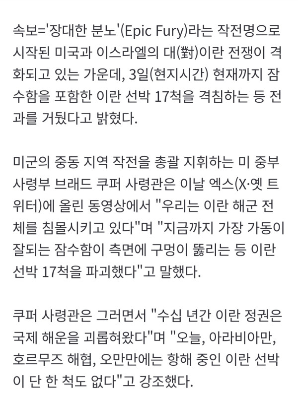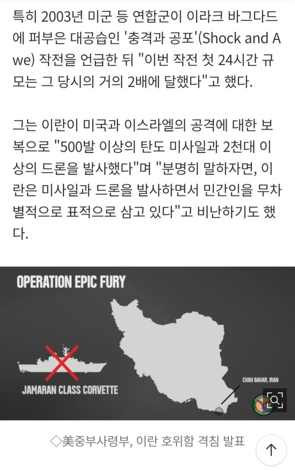 항모서 전투기 쉴 새 없이 떠…美 작전명 ‘장대한 분노’ 모습