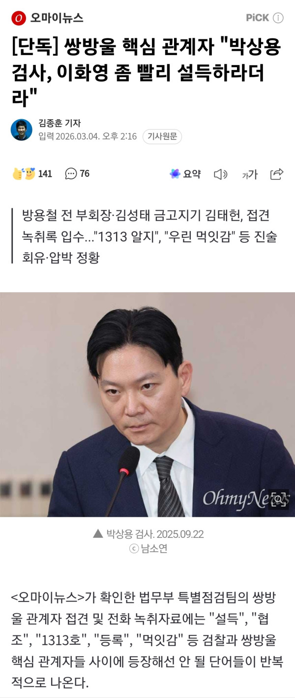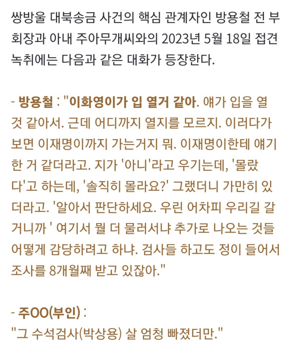 쌍방울 핵심 관계자 "박상용 검사, 이화영 좀 빨리 설득하라더라"