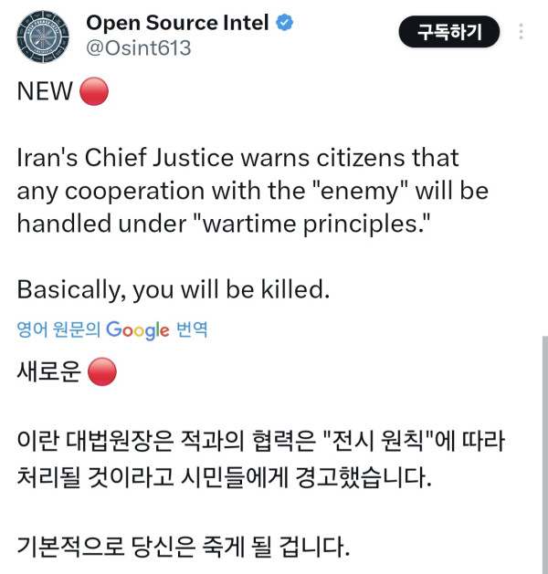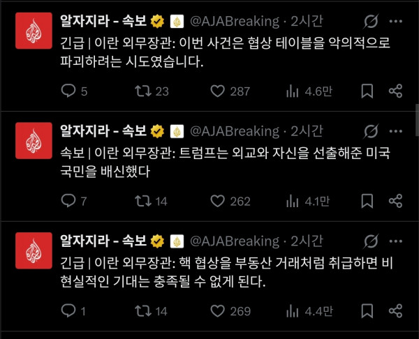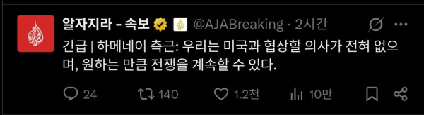 속보) 이란 미국이랑 대화 안한다