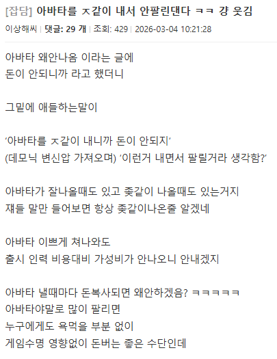 차라리 해외 서버 아바타를 가져오라고 로벤에서 목소리를 냈지만