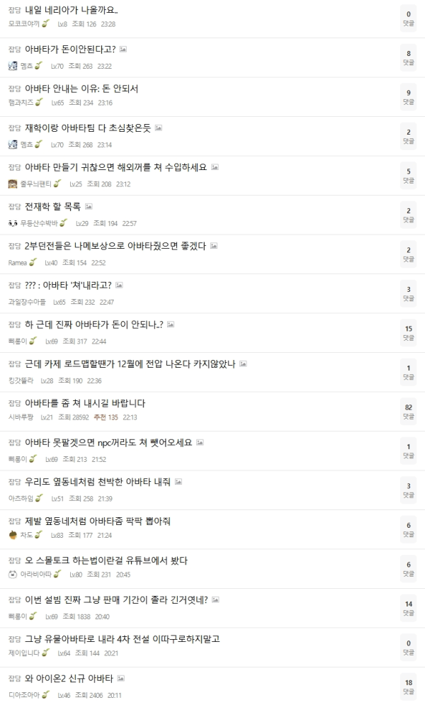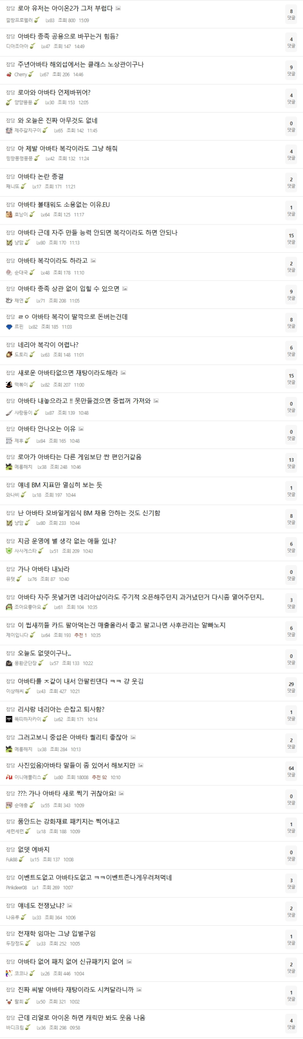 그런 와중 30추글에 아이온2 아바타 글이 올라왔는데