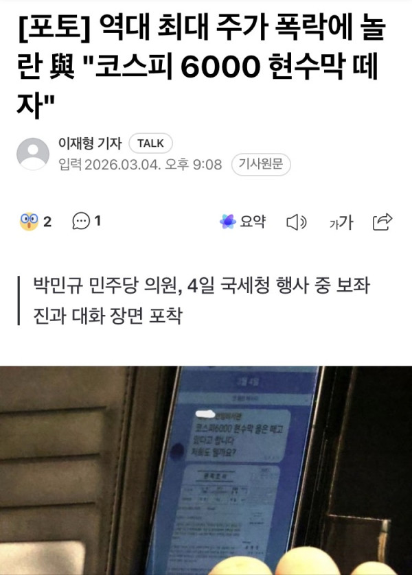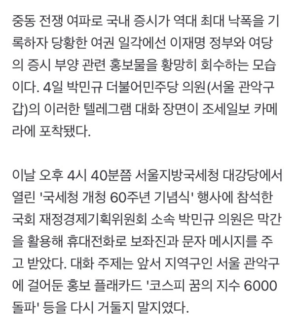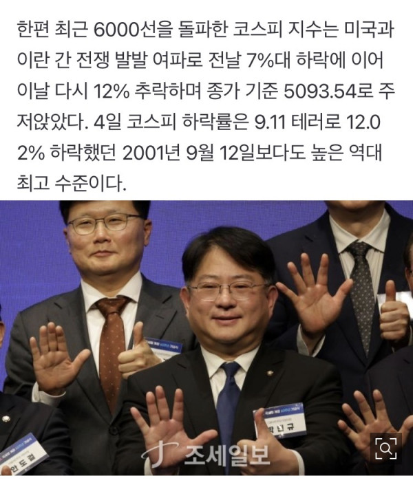 민주당 “코스피 6000 현수막 떼자”