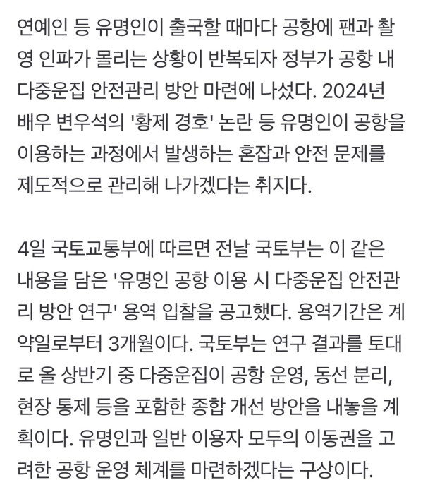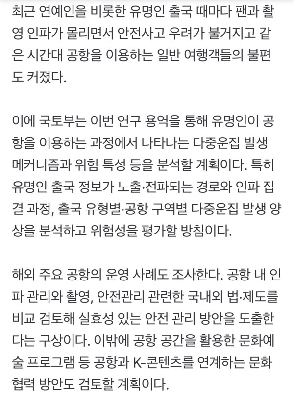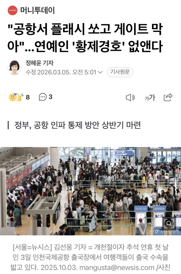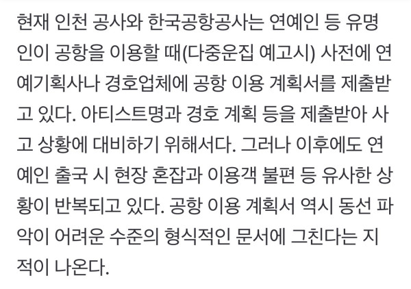 “공항서 플래시 쏘고 게이트 막아” 연예인 '황제경호' 없앤다