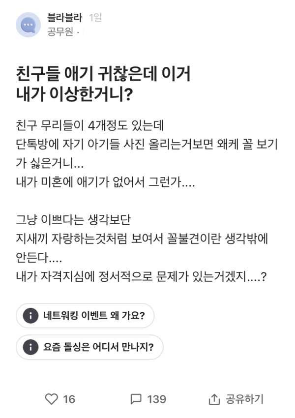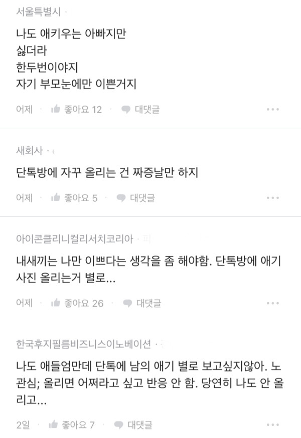 단톡방 아기사진이 꼴보기 싫다는 블라녀 ㄷㄷ