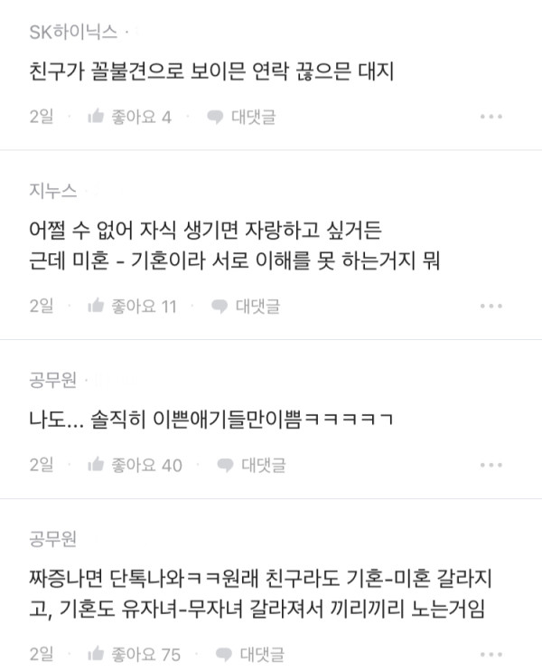 친구들이 단톡방에 아기들 사진 올리는게