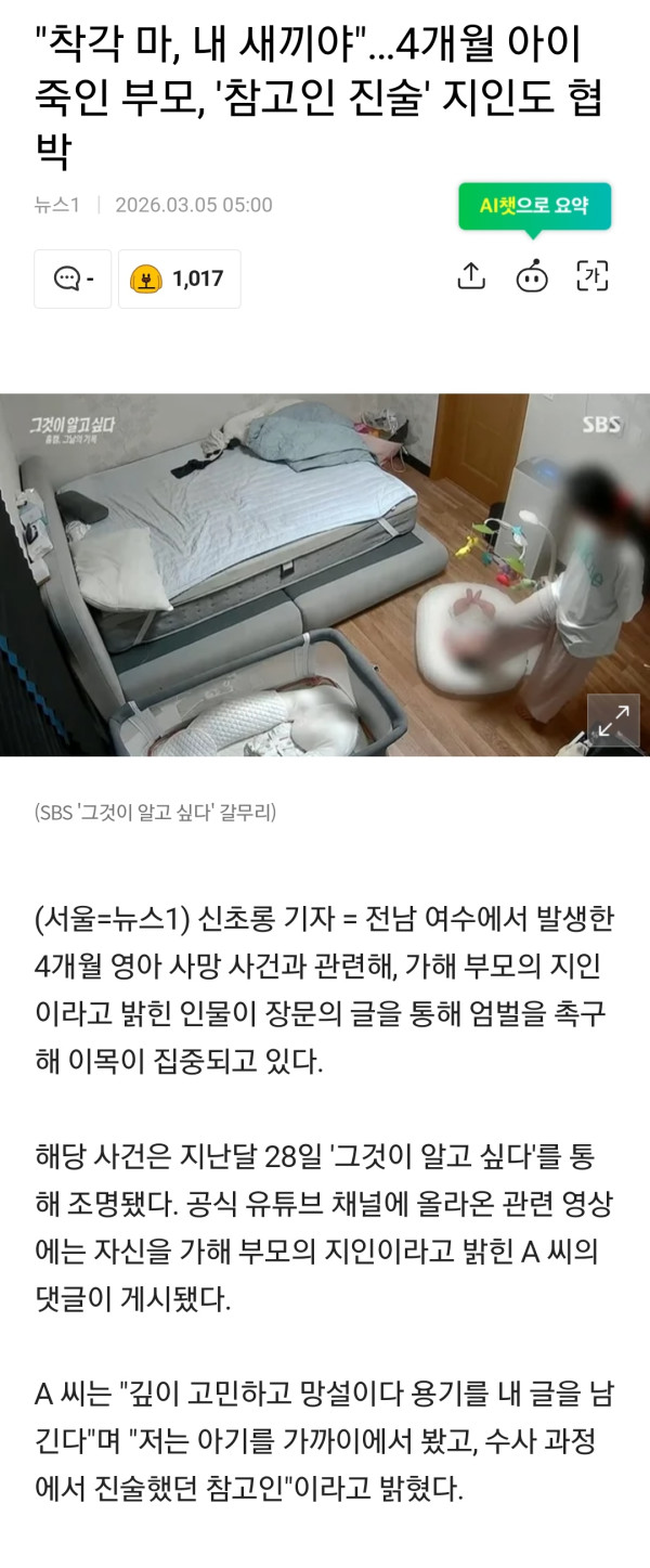 오싹오싹 념글 여수 4개월 아동 살인사건 부모 근황