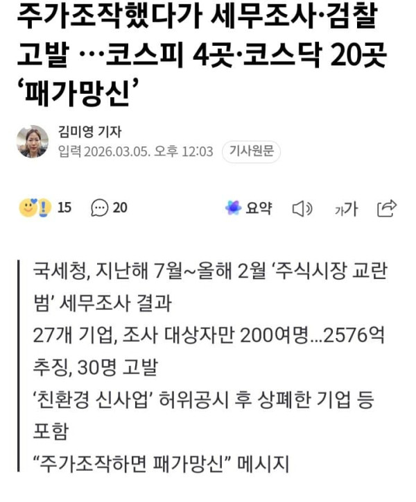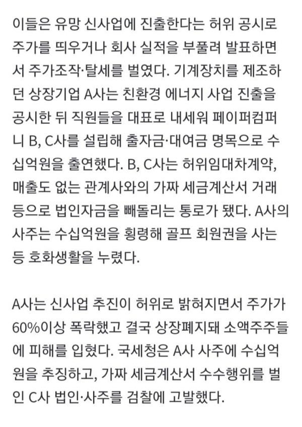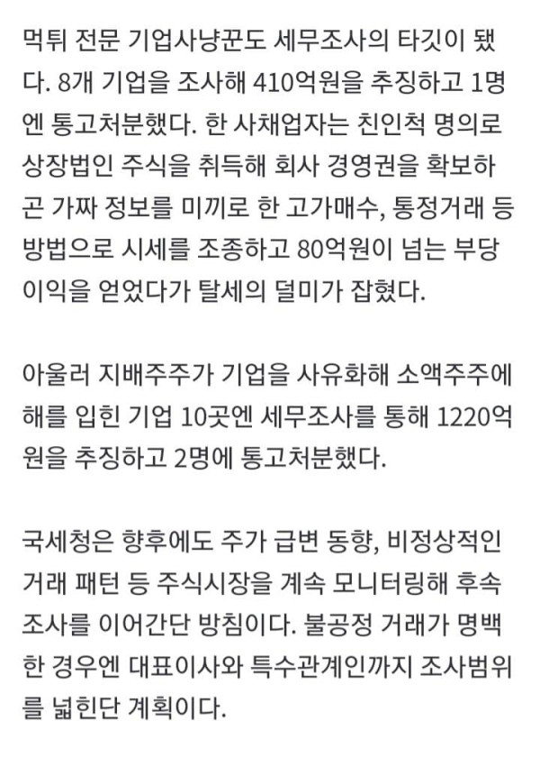 주가조작했다가 세무조사·검찰고발 …코스피 4곳·코스닥 20곳 ‘패가망신’