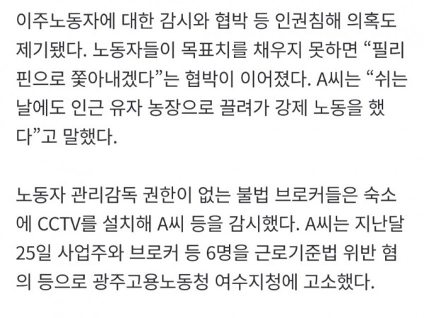 더불어 사업주가 목표치를 못 채우면 자국으로 쫓아내겠다는 협박까지 했다고함