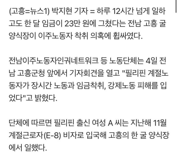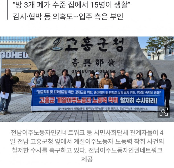 업주가 사전에 밑밥을 깐건지는 고용노동부랑 군청이 조사중인 상태..