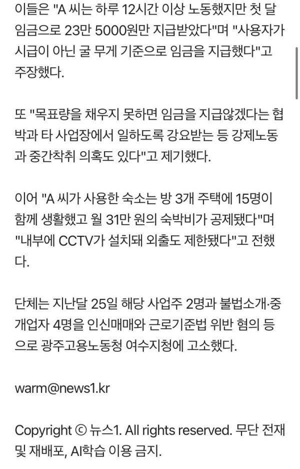 심지어 당초 계약된 굴 양식장 말고도 쉬는 날엔 유자농장에 팔려가 일을 했다는 얘기도 있음