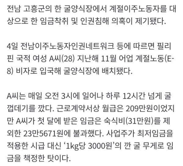12시간씩 굴 깠는데 월급 23만원..똥남아노동자의 눈물
